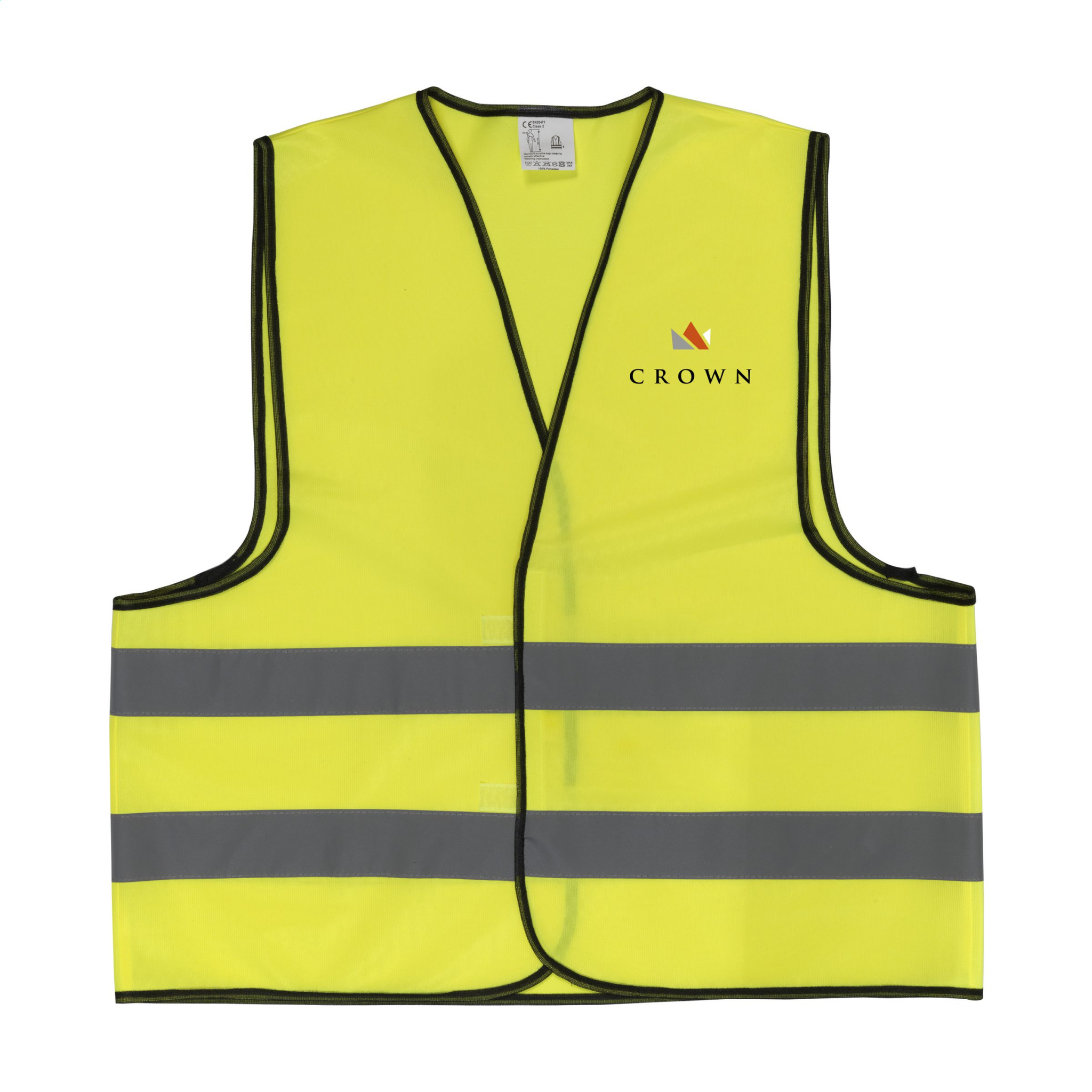 Fluorescerande säkerhetsväst tillverkad av 100 % trikåpolyester. En storlek passar alla, med justerbar kardborre. (EN-20471 Klass 2). Varje bit i en påse.