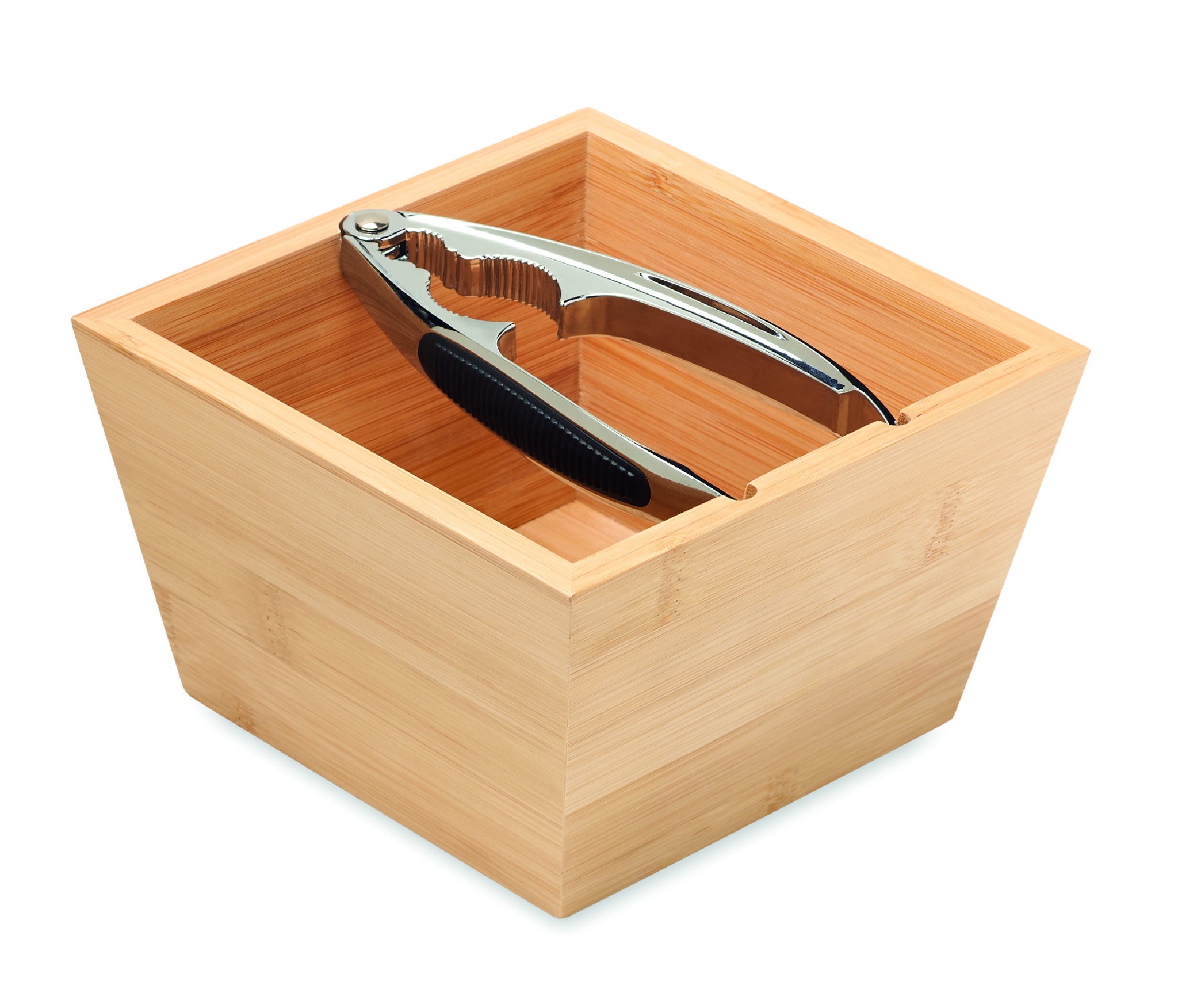 Nötset med bambuskål och silverfärgad nötknäppare i zinklegering med TPR-grepp.