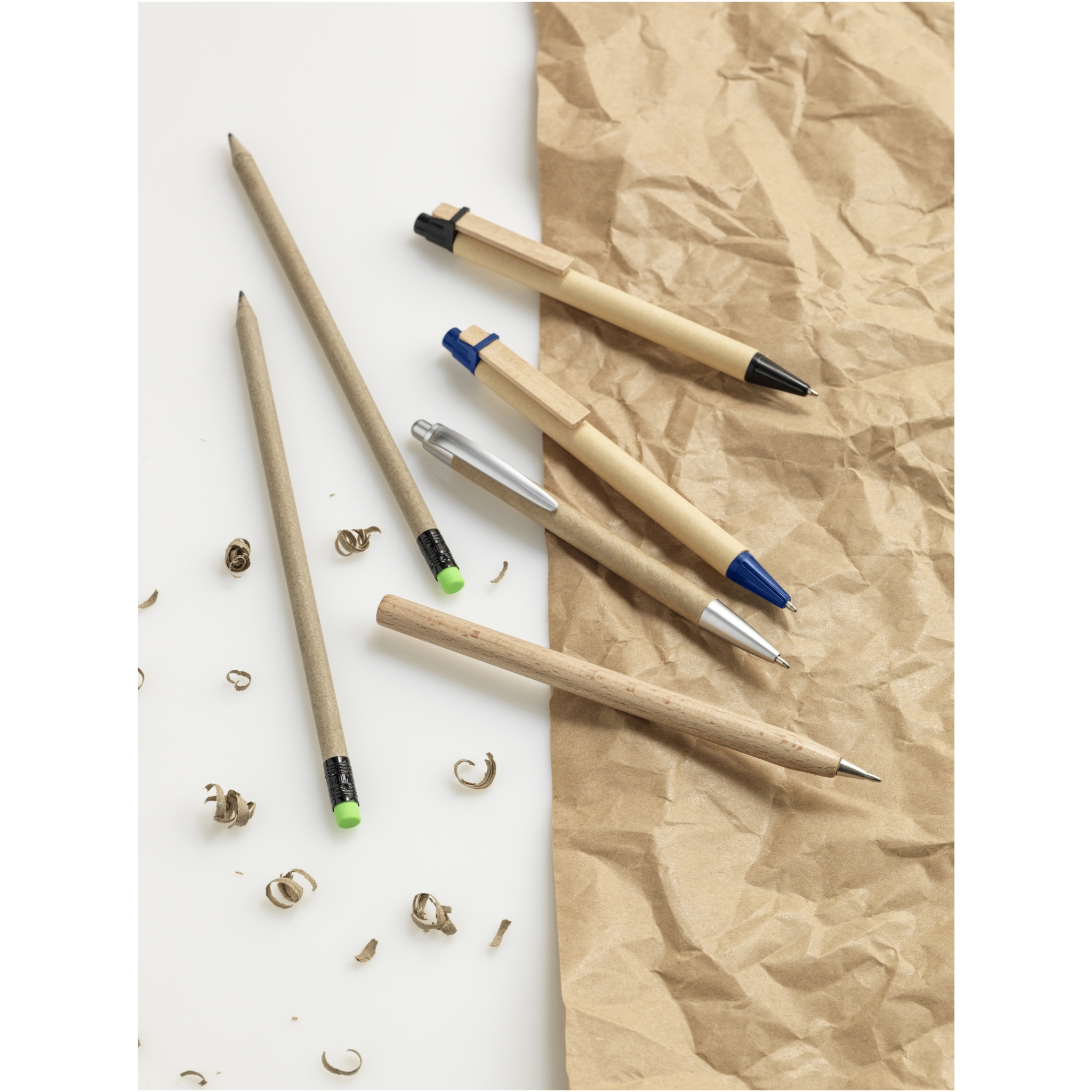 Tiflet kulspetspenna i återvunnet papper. Miljövänlig kulspetspenna med klickmekanism, pennkropp i återvunnet papper och silverfärgade utsmyckningar i ABS. Det återvunna papprets färg kan variera. Återvunnen kartong.